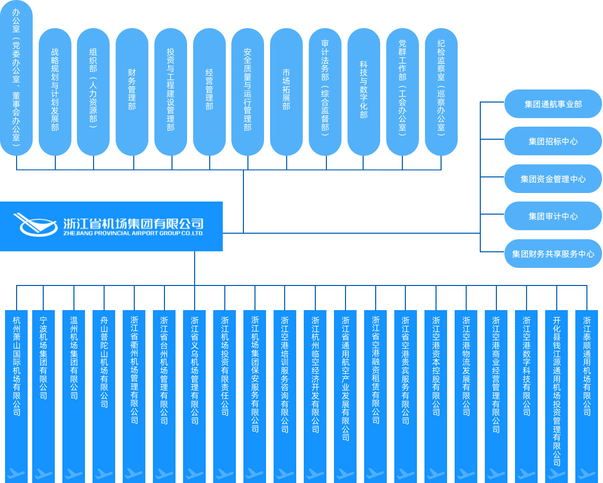 浙江省機場集團有限公司是省級綜合交通投資、建設(shè)、運營和管理平臺,根據(jù)省委、省政府關(guān)于整合全省機場資源、搭建航空大平臺的決策部署,2017年11月17日揭牌成立,時任浙江省委書記車俊、省長袁家軍共同揭牌。集團注冊資本金100億元,下轄杭州機場、寧波機場、溫州機場、舟山機場,托管衢州機場、臺州機場、義烏機場、建德千島湖通用機場等。